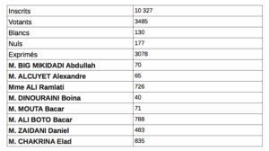 Election législative partielle 1er tour : résultats provisoires pour la commune Mamoudzou