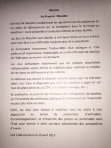 Motion des élus de Mayotte suite au clash avec le Préfet et le Procureur