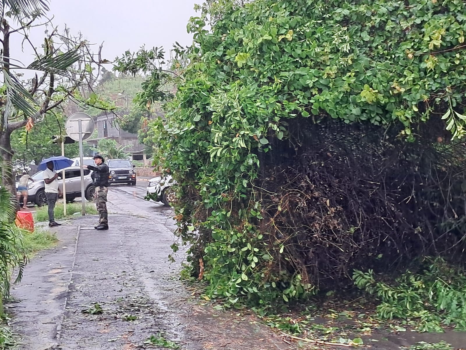 La route, en quittant le village de Poroani pour aller vers Chirongui est coupée suite à un éboulement de terrain.