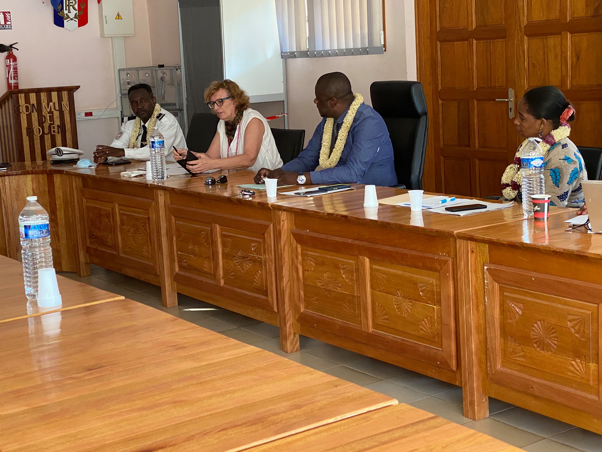 14h07 – Le maire de Bouéni et son équipe ont reçu la directrice de cabinet du préfet dans le cadre de la signature du pacte de sécurité, le mardi 6 octobre 2020, accompagné du capitaine CHAMASSI, particulièrement investi dans la commune tant sur le CLSPD que sur le partenariat avec la POLICE MUNICIPALE.