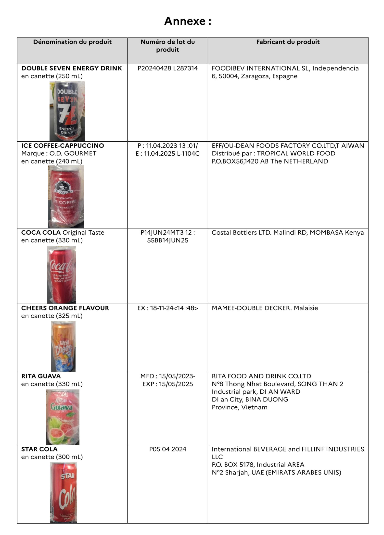 Plus d’informations sur les produits rappelés à l’adresse suivante :https://rappel.conso.gouv.fr/categorie/0/1/mayotte