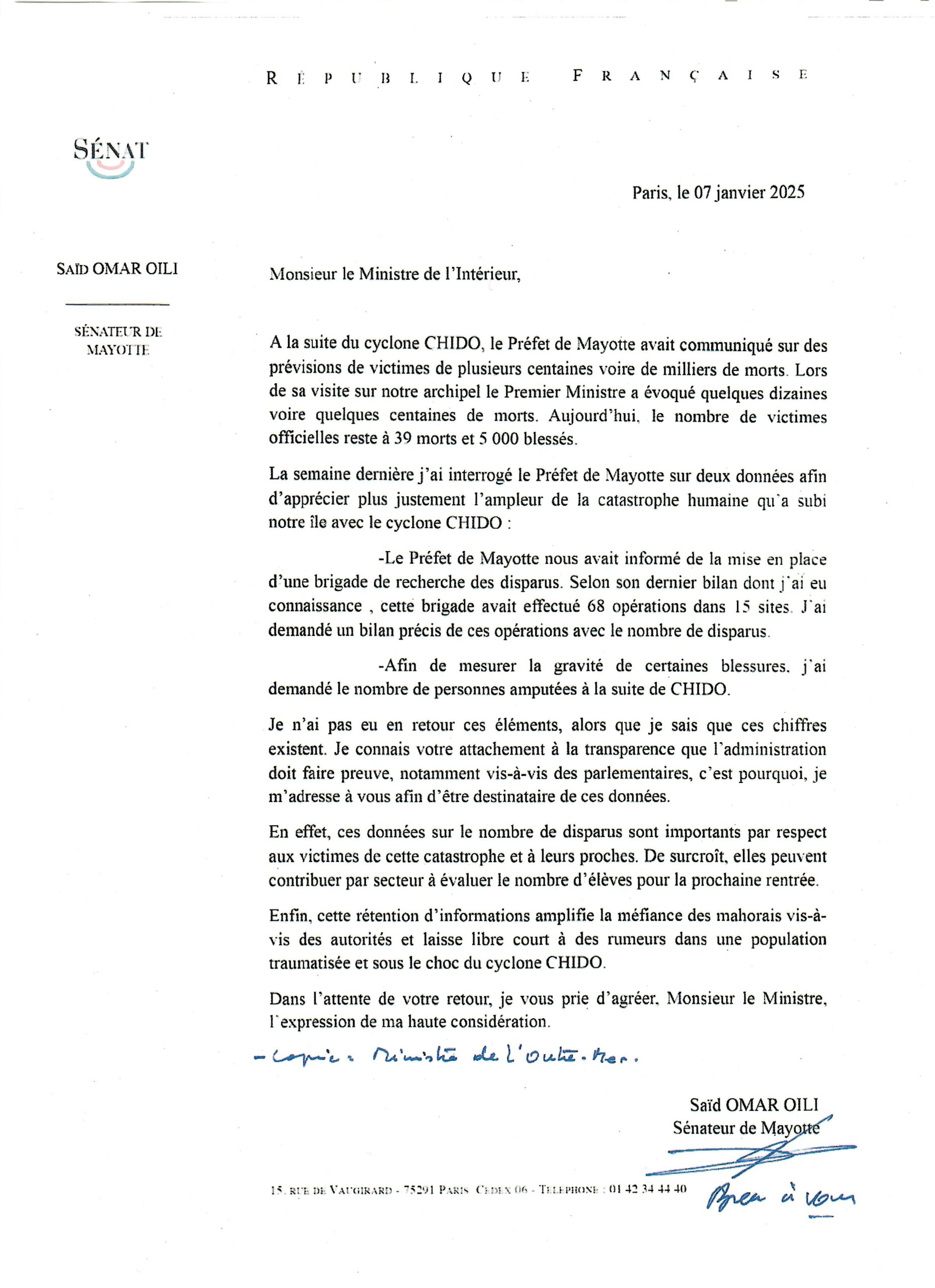 S2O demande de la transparence sur le bilan humain de Chido