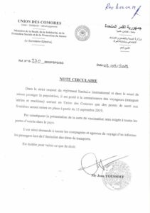 Carnet de vaccination internationale : en arrière toute à Moroni !