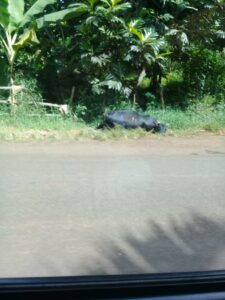 Un zébu mort sur le bord de la route dans le nord de l’île
