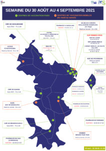 Nouvelle carte des centres de vaccination du 30 août au 4 septembre