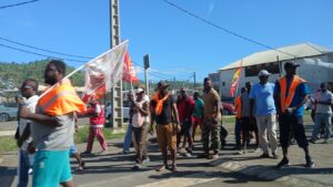 La CGT Colas bloque la route à Kawéni : les véhicules à l’arrêt