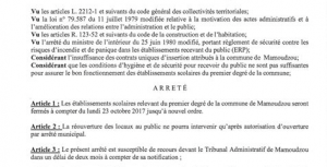 Suite à la baisse des contrats aidés dans la commune de Mamoudzou, le maire Mohamed Majani a annoncé hier que les établissements du premier degré ne seront pas en mesure d’accueillir les enfants à compter de ce lundi 23 octobre. En attendant que l’État fasse marche arrière, la municipalité vient de publier un arrêté portant fermeture temporaire des écoles du chef lieu.