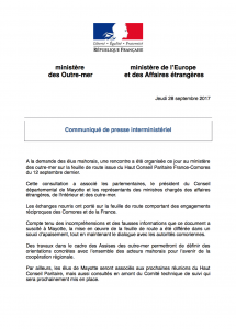 9h25: (Crédit photo: Outremer360) Suite à la réunion du 28 septembre au ministère des Outre-mer, entre les représentants de Mayotte