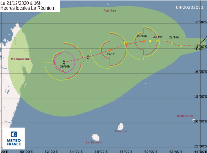 Pour le moment, à 5 jours de prévisions, pas de caractère cyclonique donc ; mais une possibilité de tempête tropicale modérée qui pourrait bien toucher Madagascar vers le 27 décembre. Une forte incertitude reste néanmoins de mise, et plus encore quant à un éventuel impact sur Mayotte. Météo-France reste très prudent dans ses prédictions, les trajectoires estimées ne dépassant pas les fameux 5 jours.
