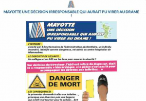 Ce matin, France Mayotte revient sur l’affaire, qui remonte à quelques jours, du détenu considéré comme dangereux qui a été transféré au CHM sous escorte. Le détenu demande à se rendre aux toilettes et profite de ce moment pour essayer de s’échapper. Il faudra l’intervention des personnels hospitaliers pour parvenir à maîtriser l’individu. Le syndicat Alliance Police a publié sur son site internet à l’échelle nationale un message intitulé : “Mayotte une décision irresponsable qui aurait pu virer au drame”. L’article complet est à lire sur France Mayotte du jour.