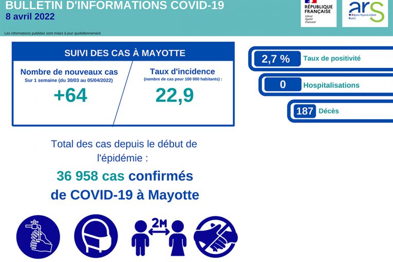 Les chiffres ne sont pas affolants, loin de là, mais le dernier point de situation de la Covid à Mayotte fait état de 64 nouveaux cas pour un taux d’incidence de 22,9 cas pour 100 000 habitants. Le taux de positivité s’établit quant à lui à 22,9 %.
