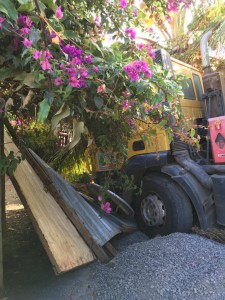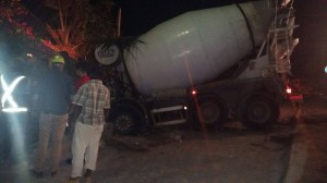 En effet une société de BTP avait en charge la réfection du parking d’une école primaire située à Cavani, et en voulant effectuer ses manœuvres le conducteur du camion perd le contrôle de son véhicule et bascule dans le jardin de cette maison en emportant toute la clôture sur son passage, le camion était alors chargé de 7m3 de ciment. Personne ne pouvait alors sortir ou rentrer dans la maison à cause des gravas.