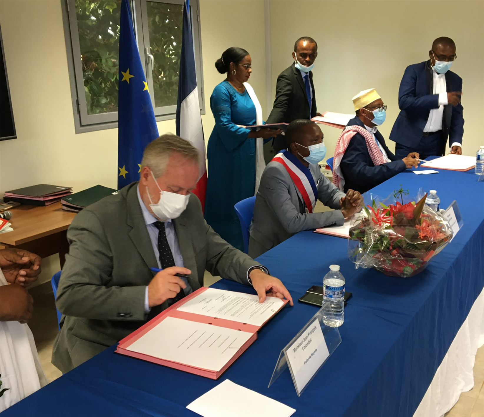 16h28 – Une semaine jour pour jour après les troubles à l’ordre public qui ont frappé la commune de Tsingoni et comme il s’y était engagé, Jean-françois COLOMBET, préfet de Mayotte, Délégué du Gouvernement, a signé la convention relative aux groupes de médiation citoyenne (GMC) avec le Président du Conseil départemental, le 1er adjoint au maire de Tsingoni et les associations Régie de Territoire et Actions pour la sécurité de M’roalé.