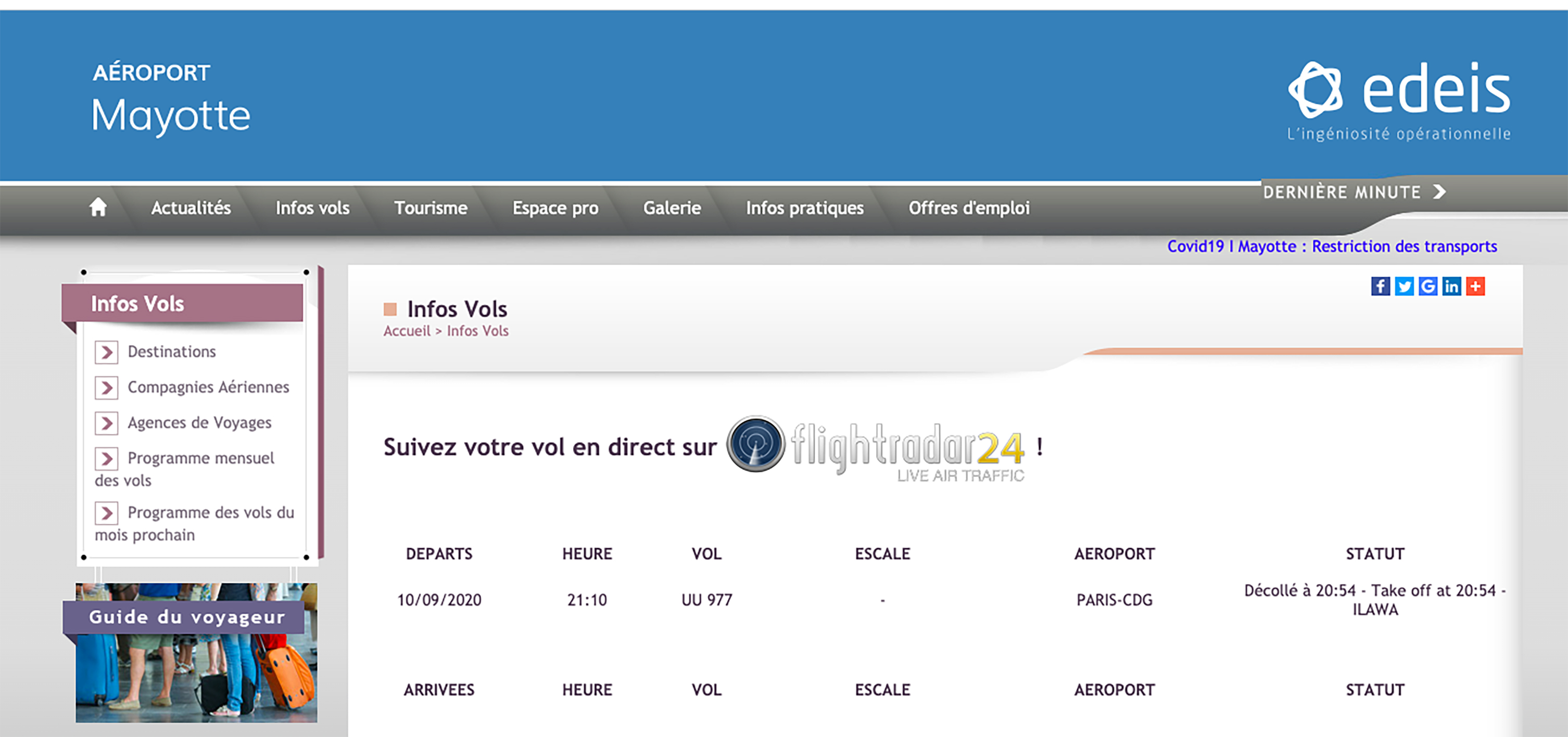 La nouvelle est plutôt bonne même si tous les verrous ne seront pas levés en une journée. Néanmoins, tous les espoirs sont permis avec des bars, des restaurants qui pourraient rouvrir de manière totale. Il y a aussi l’aéroport qui est susceptible de reprendre vie mais ce n’est pour le moment pas encore le cas. En témoignent les infos vols de l’aéroport de Pamandzi ce matin, une seule liaison est programmée en direction de Paris Charles de Gaulle. C’est bien peu…