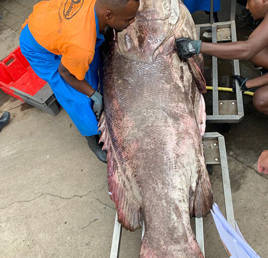 Un énorme mérou Lancéolé a été pêché lundi par un équipage de Captain Alandor, alors qu’ils étaient partis en campagne depuis plusieurs jours, comme à l’accoutumée.