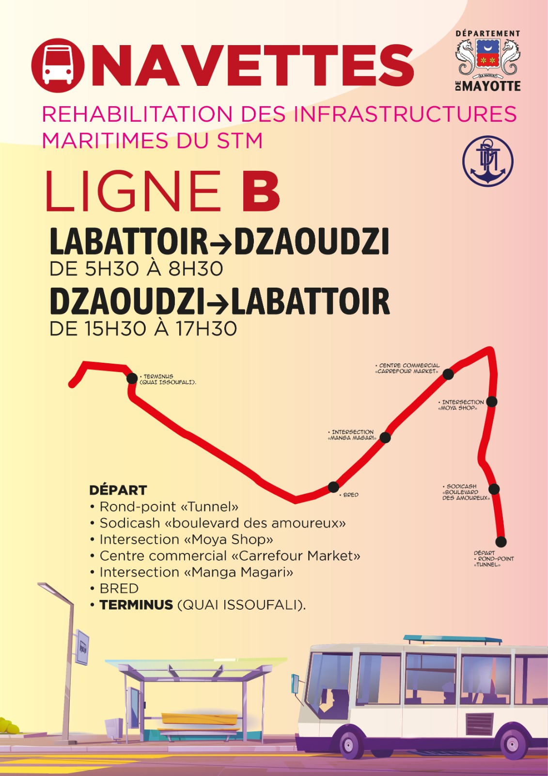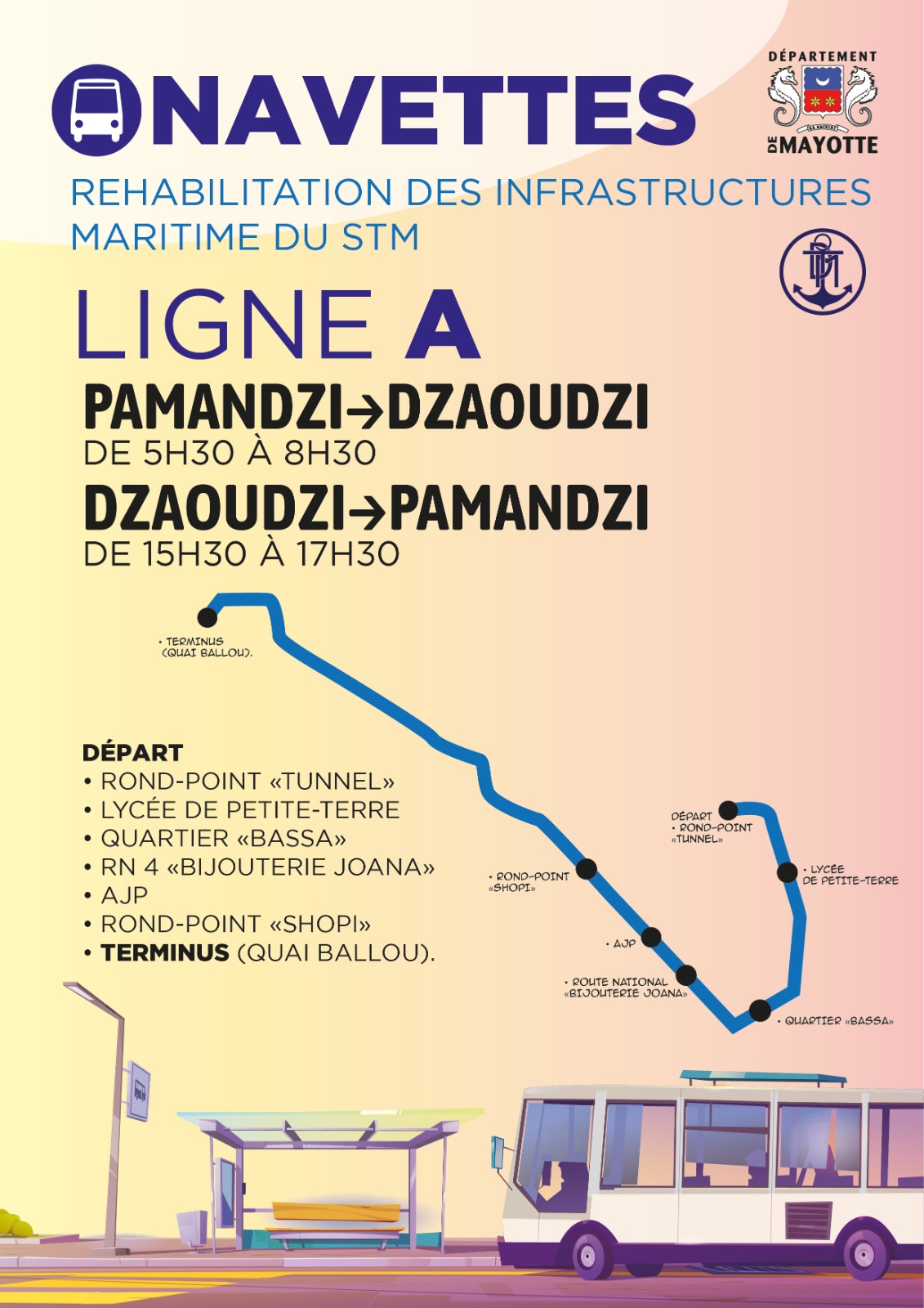 En alternative, un système de navette-bus gratuit sera mis en place pour réduire l’afflux de véhicules à Dzaoudzi, facilitant ainsi les déplacements des habitants de Petite-Terre. Deux lignes de navette-bus seront opérationnelles : Pamandzi-Dzaoudzi ; Labattoir-Dzaoudzi.